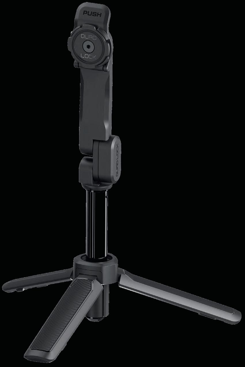 Super compact and easily transportable, no tools required, simply attached you Quad Lock equipped smartphone, then adjust the length, extend the legs, and articulate the head up to 270 degrees to get the perfect photo or video.