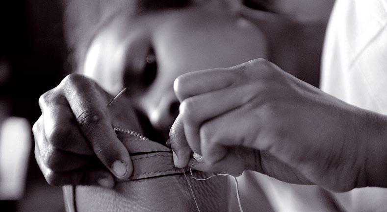 Autre particularité, presque une signature, nous travaillons uniquement avec le cœur, la main et l’outil. C’est notre devise. Chez nous, point de machine. Toutes nos coutures d’assemblage sont faites au « point de sellier ».