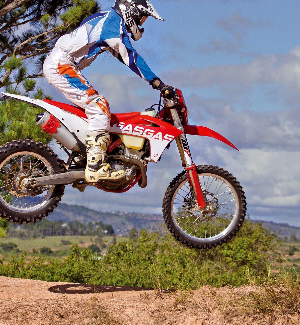 Pour le train avant les GasGas bénéficient d'une fourche WP XPLOR de diamètre 48 et d’un amortisseur arrière WP XACT.