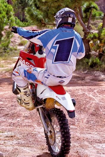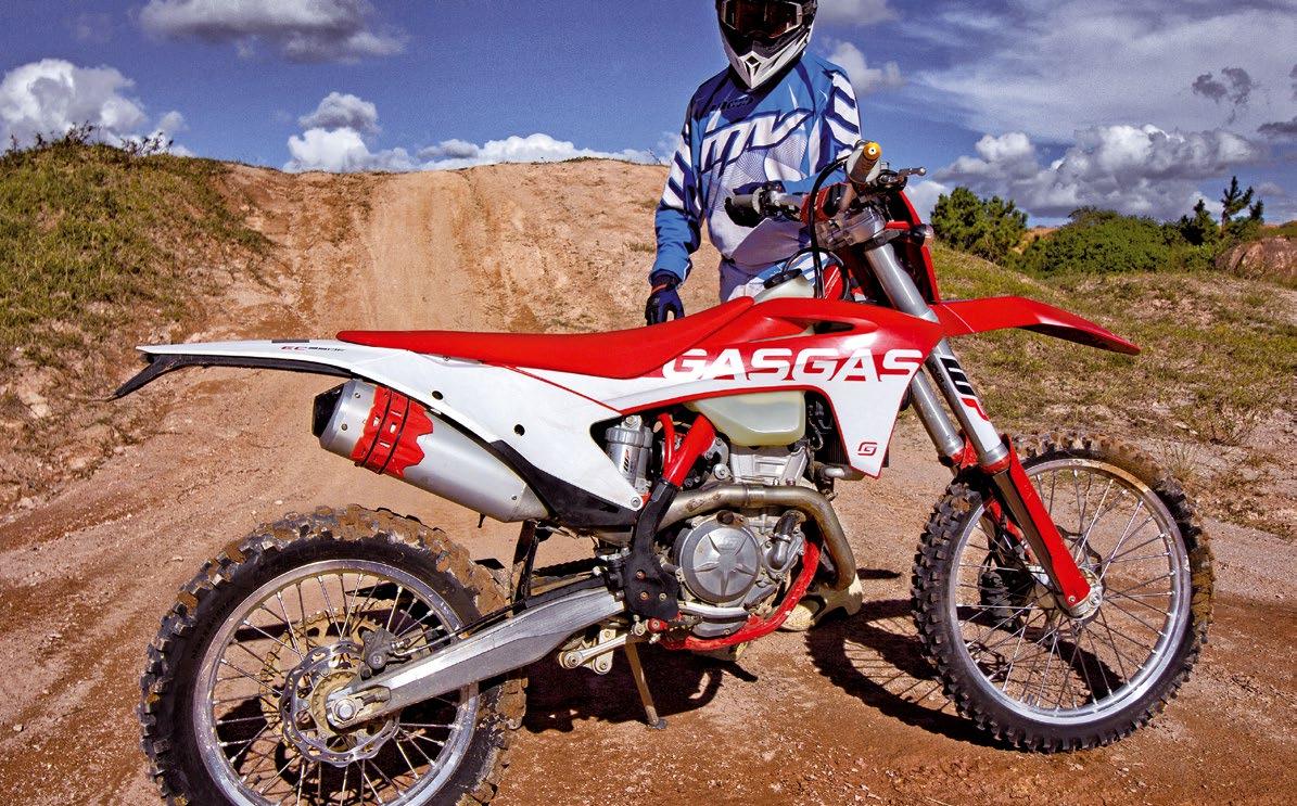 Lorsque Yann, qui nous a fait l’amitié de prêter sa moto arrive sur sa GASGAS EC 350 F, il fait son petit effet… Rouge flashy et blanc, le pilote et sa machine offrent un look sympa, agressif !
