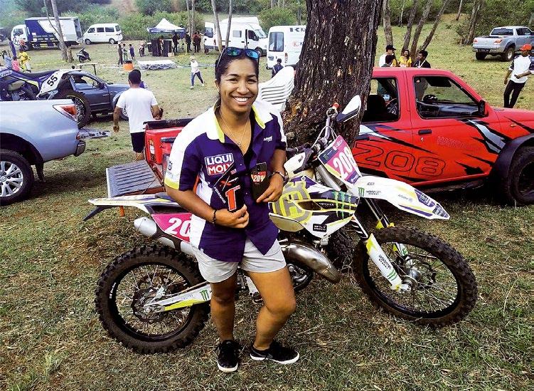 Comment as-tu découvert la moto ? Depuis mon enfance, j'ai toujours été passionnée par les sports mécaniques. Mes débuts en deux roues c'était avec un scooter quand j'étais encore au lycée. Mais c'était pendant les grandes vacances à Majunga après mon bac que je suis tombée amoureuse des XR. Vers la fin de l'année 2000, mes parents m'ont offert une belle XR 600 qui appartenait à Rico. De fil en aiguille j'ai commencé à fréquenter les motards et regarder les compétitions du côté d'Ambohidratrimo.