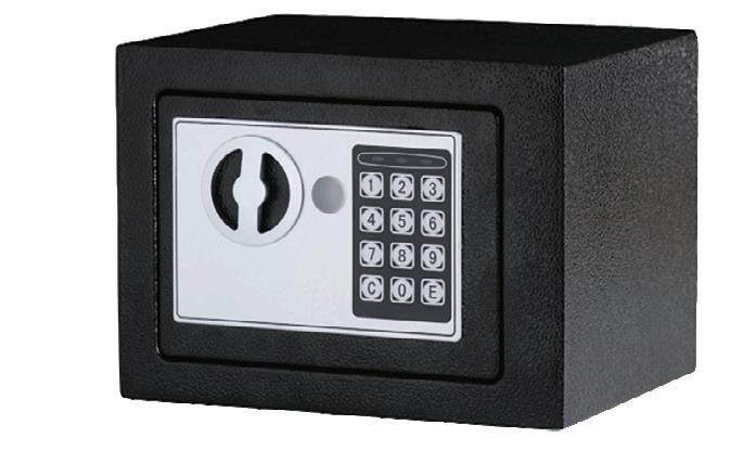 Arvotavaroiden, asiakirjojen ja korujen turvalliseen säilytykseen. Mitat 23 x 17 x 17 cm.