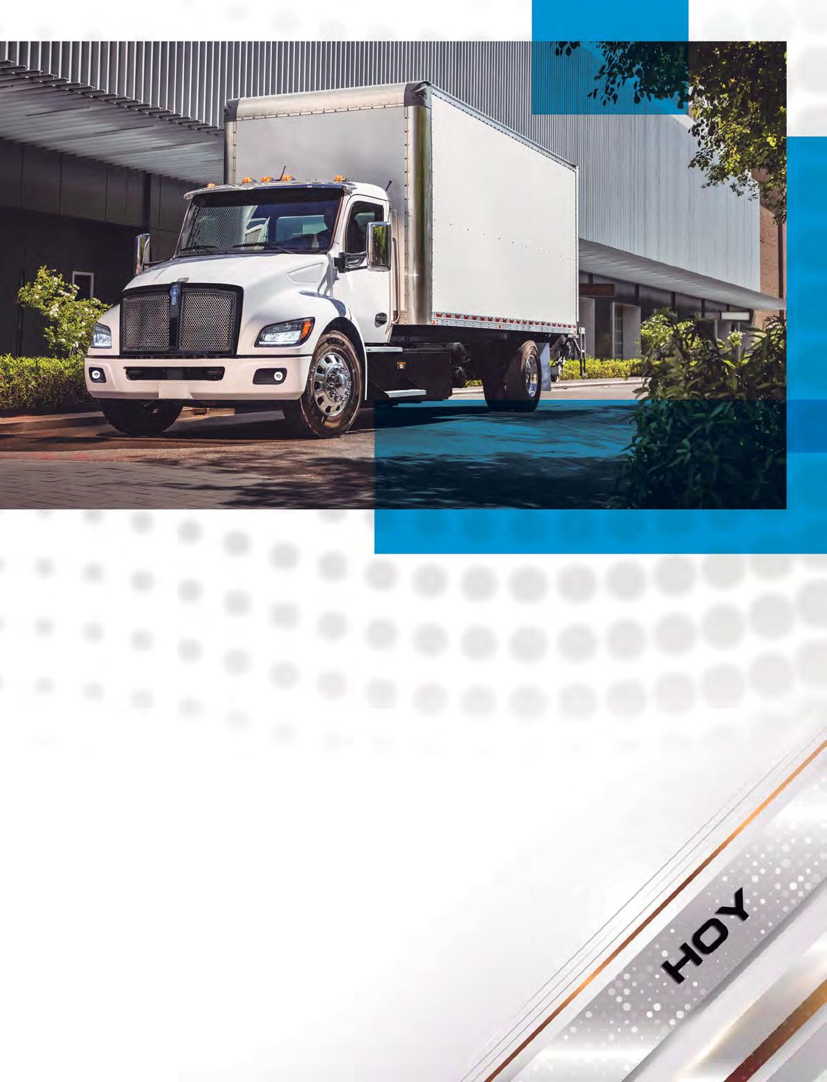 - Kenworth T280E (Clase 6, 26K GVWR, sin necesidad de licencia CDL en EUA: El T280E está disponible con opción de batería de dos paquetes, con potencias de motor eléctrico de hasta 270 kW y 1,100 lb-ft de torque. Ofrece hasta 200 millas de autonomía, lo que lo hace ideal para recolección y entrega, así como para rutas urbanas.