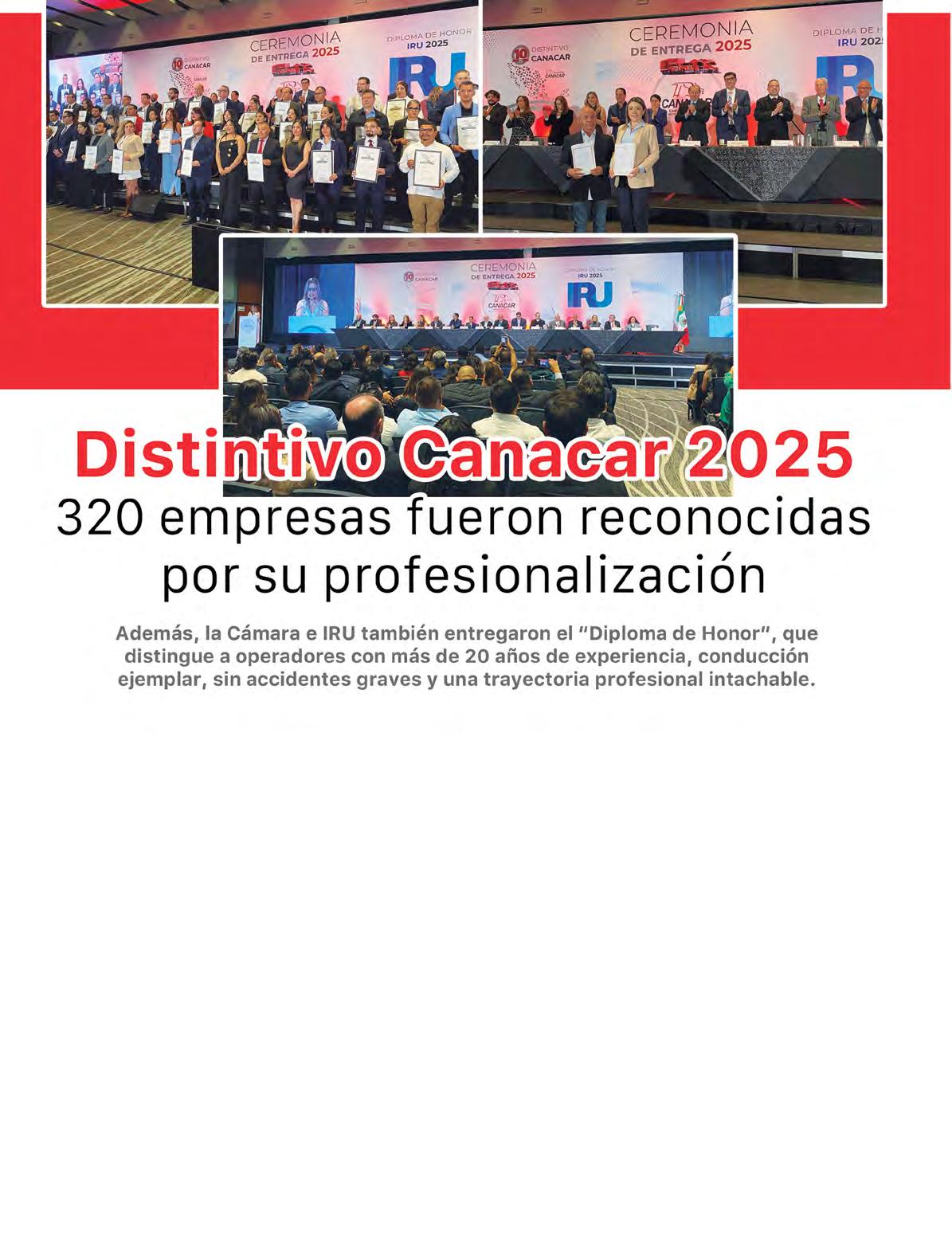 La Cámara Nacional del Autotransporte de Carga (Canacar) celebró la décima edición del Distintivo Canacar 2025, consolidado como el programa de profesionalización más relevante del sector en México, así como la entrega del “Diploma de Honor IRU”, en una jornada histórica para impulsar la profesionalización del sector.