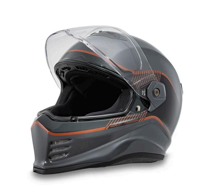 Aerodynamicallyimproved,securelysealed,andfog-free…thoseareafew reasonswhyourLimitedEditionDivisionX15SunshieldFullFaceHelmetis anewmaximumcoveragefavorite.Itslow-profileshellisengineeredto minimizebothliftandturbulenceforasmoother,quieter,andmorestable ride.Addtothataconvenienttoollessfaceshieldsystem,aratchetsystem thatpullsthefaceshieldsecurelyagainsttheeyeport,andaclearerview fromadvancedfog-freetechnology.Finishedwithahitofouriconicorange colorforanauthenticHarley-Davidsonlook
