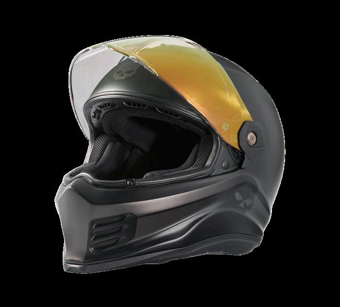 AmaximumcoveragefavoritethatcelebratesWillieG.Davidson’s creativelegacyishereonourH-DDivisionX15FullFaceSkullGraphic Helmet.Itslow-profileshellisengineeredtominimizebothliftand turbulenceforasmoother,quieter,andmorestableride.Addtothata convenienttoollessfaceshieldsystem,aratchetsystemthatpullstheface shieldsecurelyagainsttheeyeport,andaclearerviewfromadvancedfogfreetechnology.It’saestheticallydesignedwithaslightlytintedface shield,asleekmattefinish,andWillieG’sacclaimedSkullgraphic