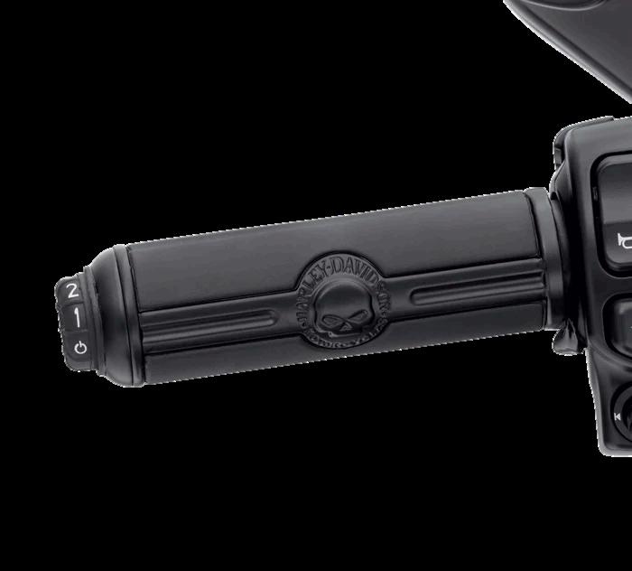 StyledtocomplementWillieGSkullCollectionhandandfootcontrols, thesethermostaticallycontrolledheatedhandgripswillkeepyou comfortableonacoolweatherride.