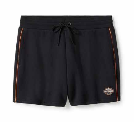 Your sporty look gets an H-D upgrade in our Essential Fleece Short. Cut from heavyweight cotton/polyester interlock for longwearing comfort and durability. Features a move-with-you waistband with drawstring and side pockets. Finished with a pop of side-seam piping and our most iconic Bar & Shield logo.