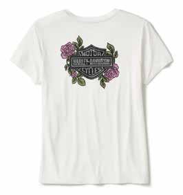 Flattering, floral style is retooled for Harley fans on our limitedissue Rose & Thorn Bling Lace Trim Tank. Its slim-fitting silhouette is crafted from durable yet breathable cotton interlock with a hit spandex for added stretch. This women’s tank top takes a stylish detour with its lace trim and embellished graphics that fuse our moto legacy with blooming roses. Snag yours while supplies last.