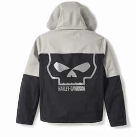• Water-resistant zippers with rubber Harley-Davidson branded, glove-friendly pulls for easy open and close