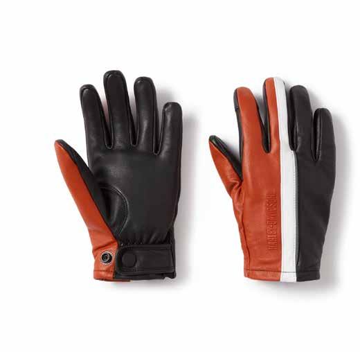 Added comfort goes the distance with you in the H-D® Trenton Leather Riding Gloves. They’re built from buttery-soft goatskin leather with a padded palm to help minimize road rattle, touchscreen compatibility, and reflective material to enhance visibility. These men’s motorcycle gloves also feature D3O® Ghost™ armor at the knuckles for lightweight impact protection.