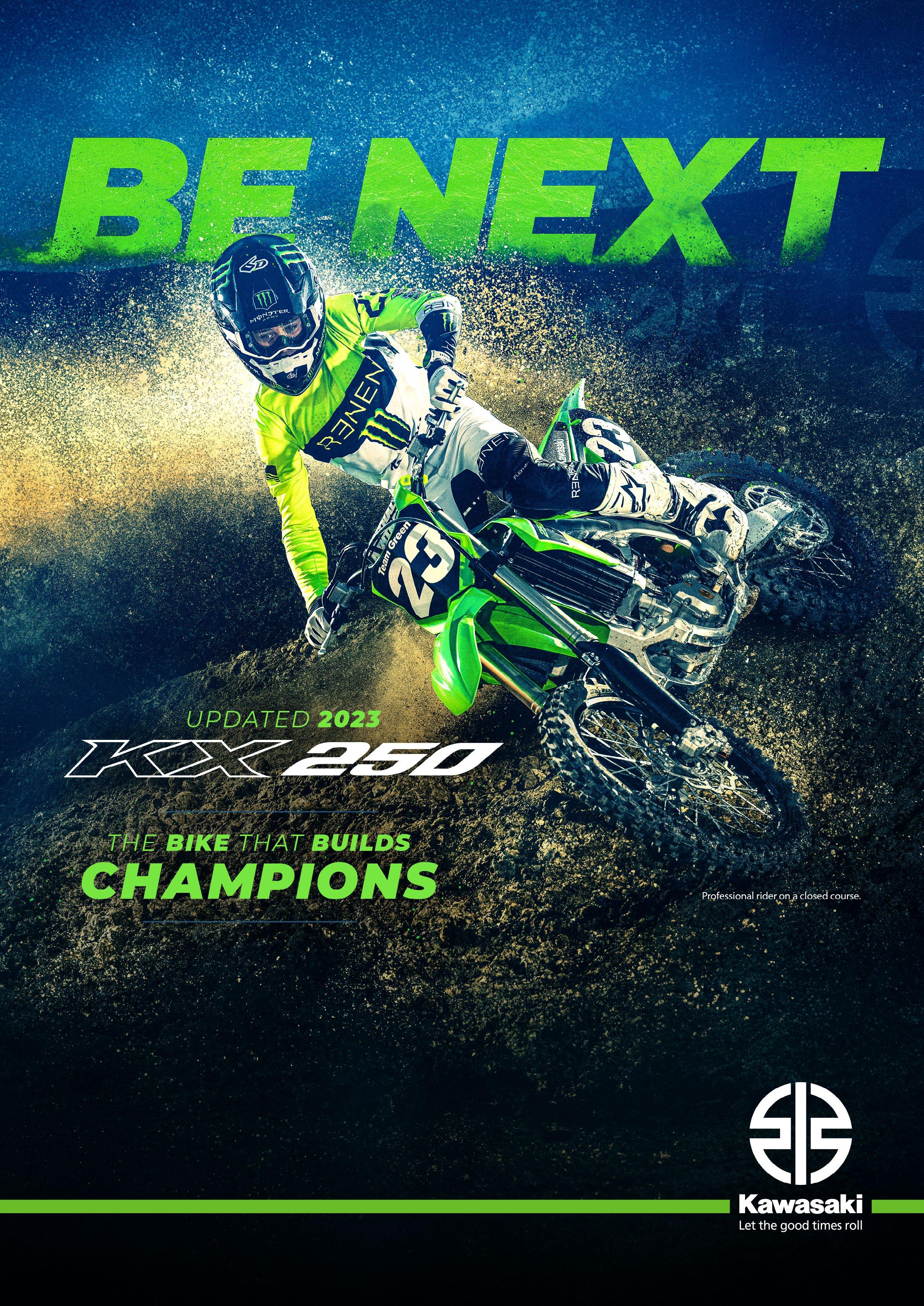 With more Supercross and Motocross championships than any other manufacturer, the KX name is synonymous with winning. The KX250 motorcycle is the championship-proven machine built so you can ‘Be Next’. Be the next champion. Be the next hero. Be the next legend. Be the next trailblazer for an entire generation of greatness. On the KX250, your time is now.
