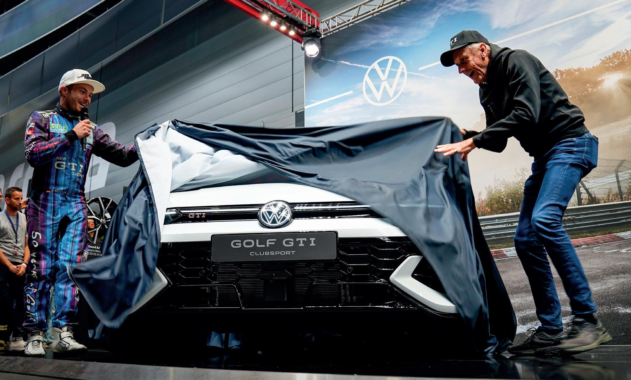 Benjamin Leuchter and Hans-Joachim Stuck, unveiling the new GolfGTI at Nürburgring