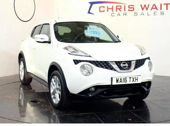 67 CITROEN C3 FLAIR 5DR £8995 18 DACIA STEPWAY LAUREATE 66 JEEP RENEGADE LONGITUDE 16 RENAULT CLIO DYNAMIQUE 19 PEUGEOT 2008 ALLURE 71 DACIA DUSTER ESSENTIAL 64 BMW 2 SERIES 70 FIAT 500 X SPORT AUTO 65 HYUNDAI i10 SE 5DR 69 FORD ECOSPORT ST-LINE 68 FORD KUGA AUTO 4X4 65 KIA SPORTAGE CRDi KX-I 63 KIA VENGA 2 68 NISSAN JUKE TEKNA 16 PEUGEOT 208 ALLURE 65 PEUGEOT 2008 ALLURE 16 NISSAN JUKE ACENTA 5DR 13 RENAULT SCENIC 15 VAUXHALL CORSE EXCITE Rock Garage, The Rock, Blackwood, Gwent NP12 1DD 01495 224663 www.chriswaitecarsales.com WE WANT YOUR CAR! COME TO US FIRST FOR A COMPETITIVE VALUATION AND SAME DAY BANK TRANSFER! FINANCE EXAMPLE: Cost of Vehicle £9,495, £0 Deposit, 60 Monthly Payments of £190, Total Payable £11,400. Typical APR 9.9%. Finance subject to status. OPENING HOURS: MON-FRI 9-7 SAT 9-5.30 SUN 10.30-5 ALL MAJOR CREDIT CARDS ACCEPTED £12995 £13995 £8995 £9495 £16995 £6495 £8995 £11995 £8995 £4995 £12495 17 NISSAN QASHQAI ACENTA £11495 £7995 £8995 £7995 £7995 £5495 £5995 £14995 Click Here to view all stock