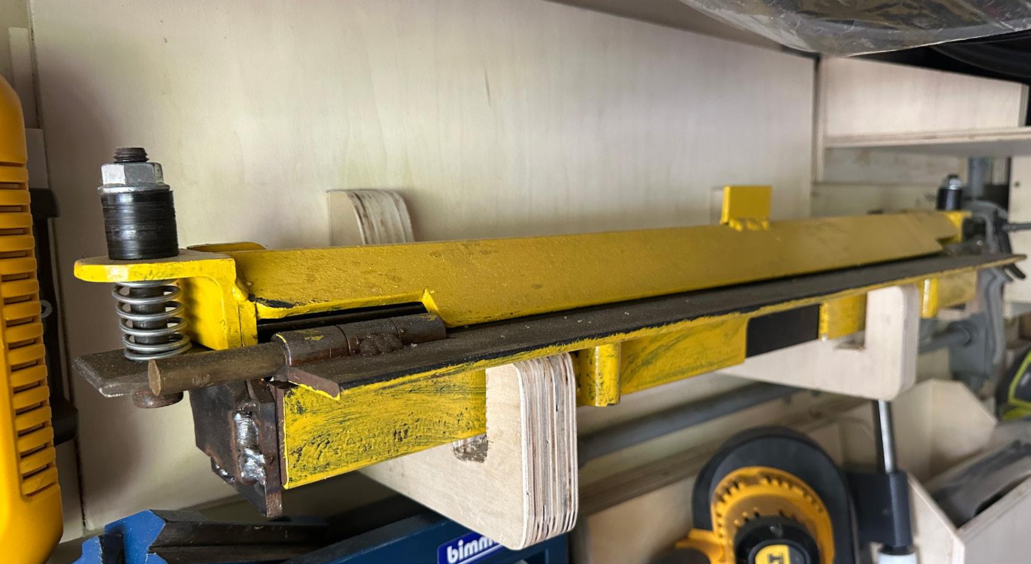 came up with, as you can see from the photo below. I do have to admit that I have to come up with a better solution to store the bending arms for the brake.