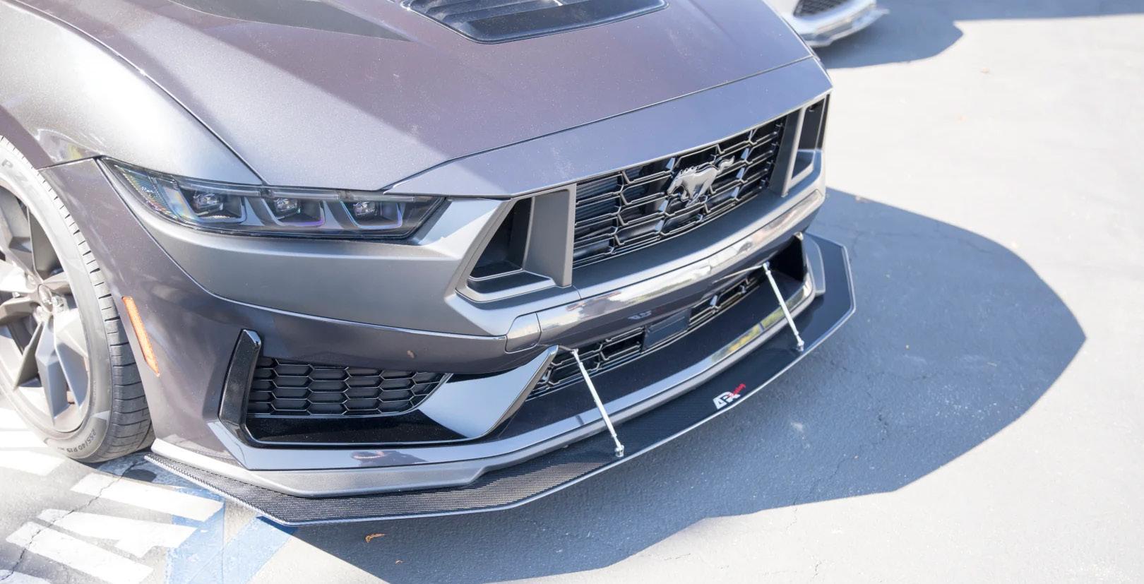 also has two new carbon fiber products available for the 2024 Ford Mustang Dark Horse are available for purchase; a carbon fiber front splitter and carbon fiber replacement mirrors.