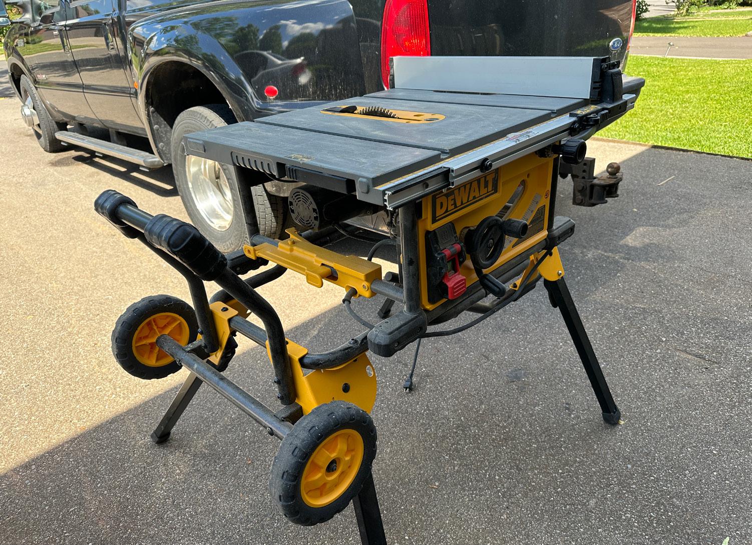 the work bench on the lefthand side of the shop. One of the things that multiple myeloma stops me from doing is lifting heavy objects. Why you ask, the MM can attack the bones and make them brittle, therefore no lifting heavy objects. Our local Home Depot will only make 2 cuts in a sheet of plywood, but that is enough to make for an easier lift. So, I instructed them to make two 10-inch length ways cuts, that I could easily cut again into 5-inch strips. This is where things got interesting, I want to get my Mastercraft table saw out of the shed and it was gone! WTF as they say! Yep, some bright boy had made off with it and now what was I going to do? So, back to Amazon and I could not believe it when I found a DeWalt DWE7491RS job site saw for $200 off. $600 bucks was a pretty good price I thought but imagine my surprise a week later when the Amazon and Home Depot prices were now at $919. I’m never normally this lucky but my table saw purchase was an even better deal than I first imagined! Although disappointed with having