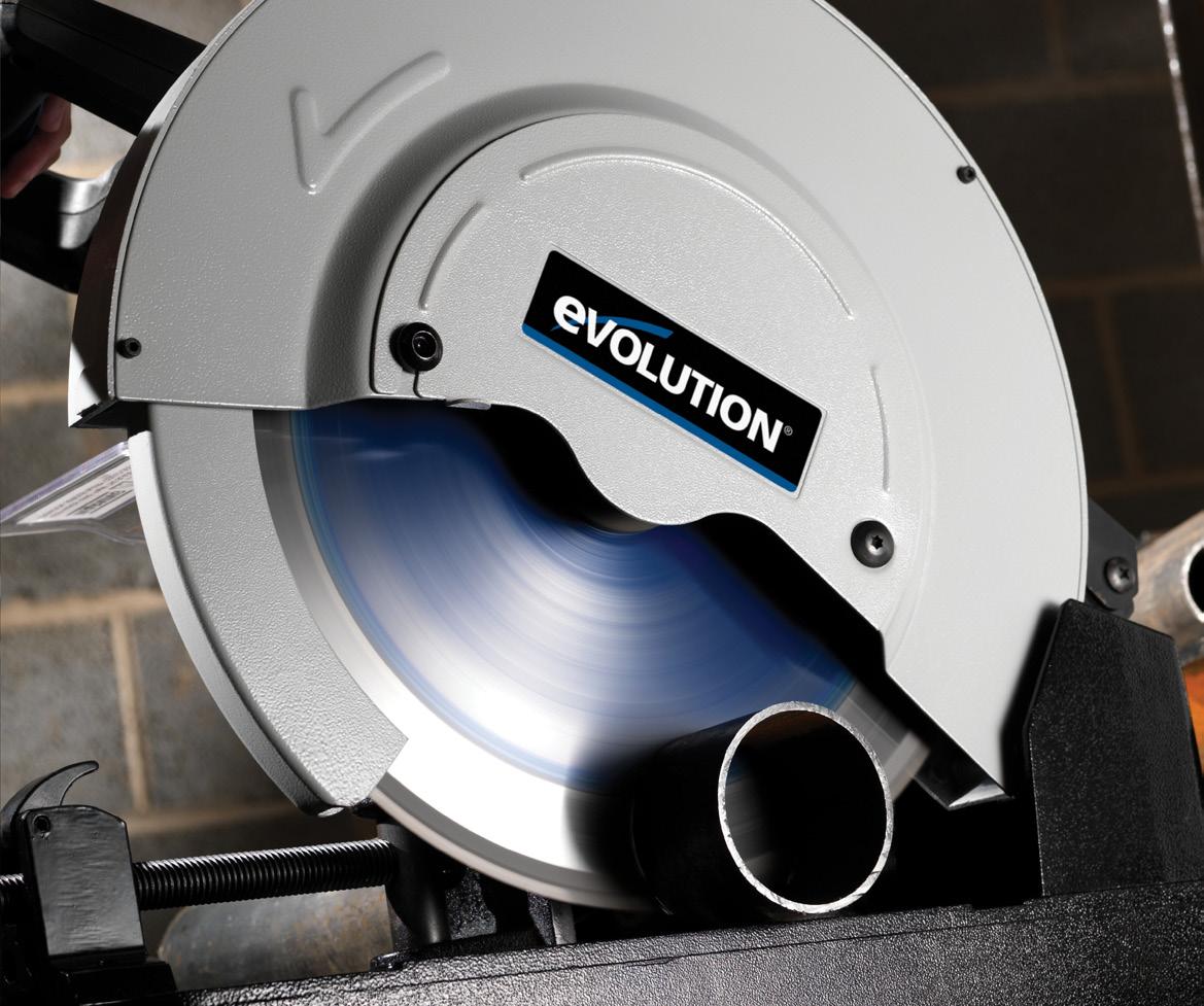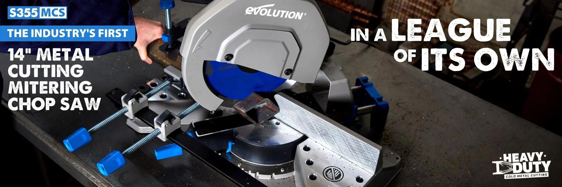 Built for professionals, the S355MCS Mitering Chop Saw from Evolution Power Tools is the first 14” TCT industrial Chop Saw that allows you to produce accurate miter cuts without having to reposition the workpiece.