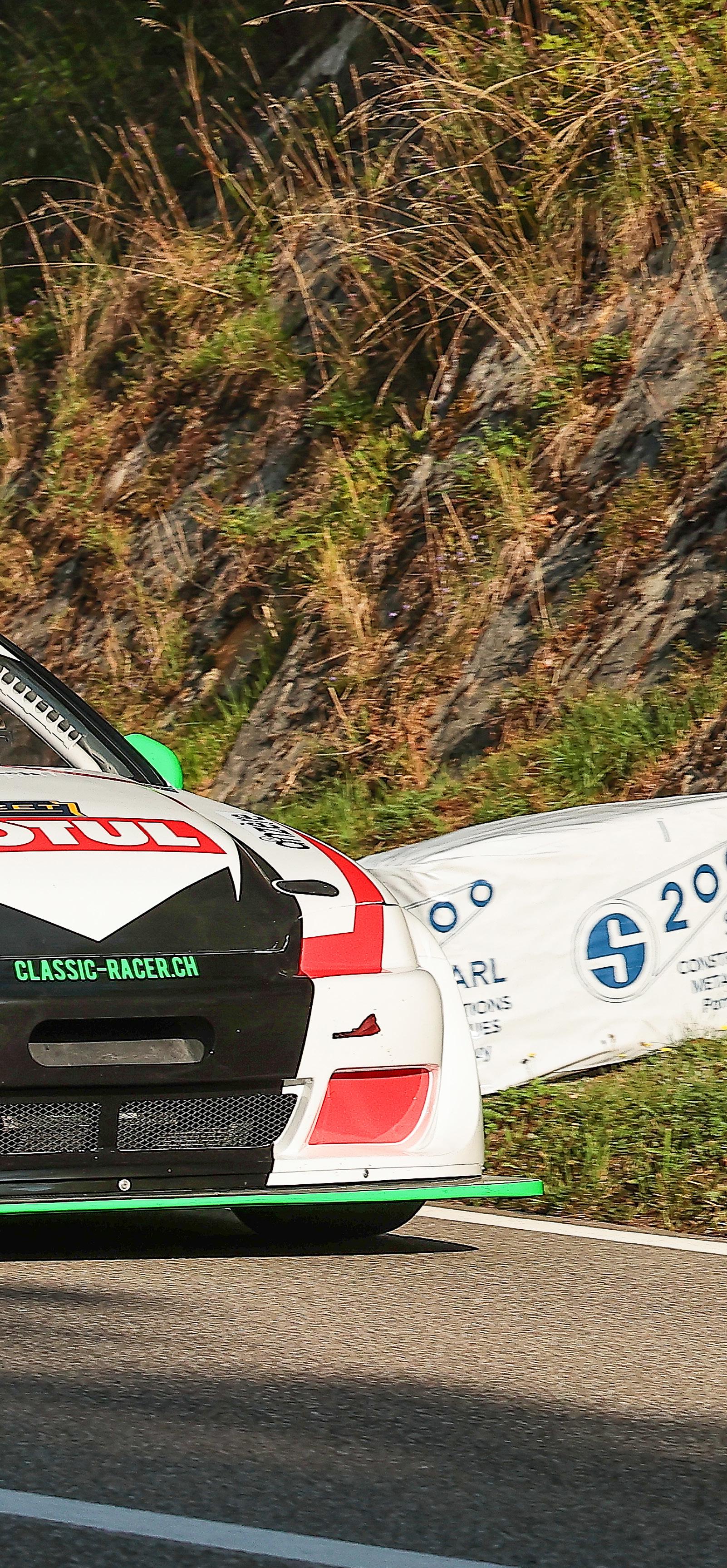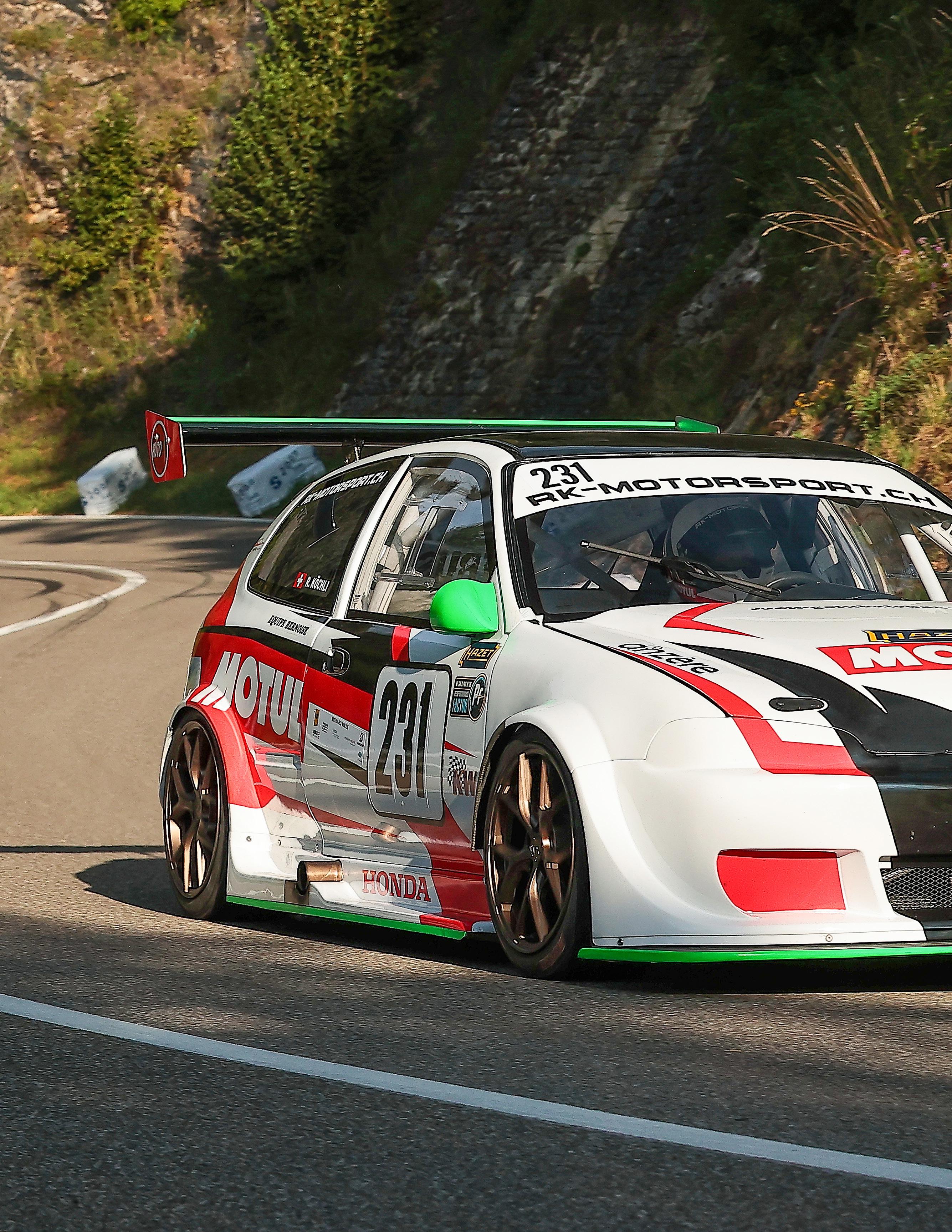 been hillclimbing is basically a standard roadgoing car. Some mods are allowed as long as the car remains road legal and runs on road legal tyres. The only changes we made to the car were to change the springs (lowering the car a little) and stiffening it up, plus adding some negative camber to the front wheels. I did try some different tyres but came to the conclusion eventually that the standard Michelin Pilot Sport 4S tyres are as good as anything out there!”