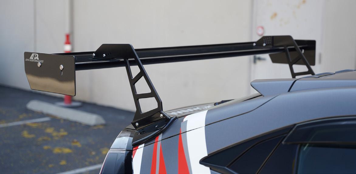 wing to work as designed. The swan neck design allows greater Angle-of-Attack (AOA) before stalling occurs, when compared to standard bottom-mount pedestal configurations. As with othe APR wings an attachable Gurney flap is included. The company