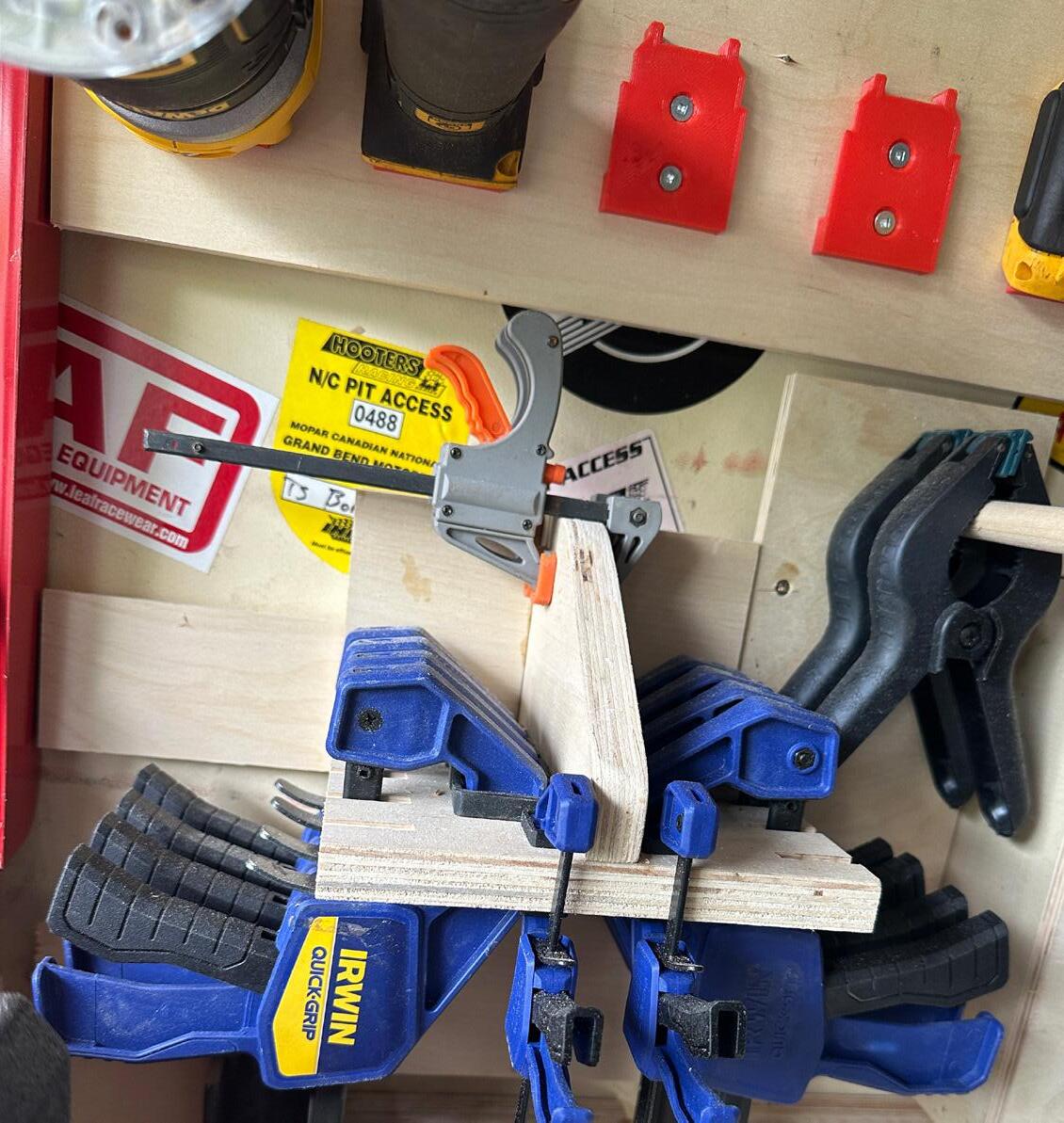 Cooper RSR again, I decided it would be better to revamp and rework the race shop to make things easier when we did get back on our ongoing MINI project. During the downtime when I was not feeling so hot, I spent many hours on YouTube researching various videos. One thing I did come across were many carpenters who outfitted their workshops with something called French cleats.