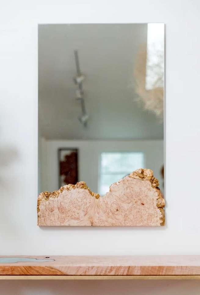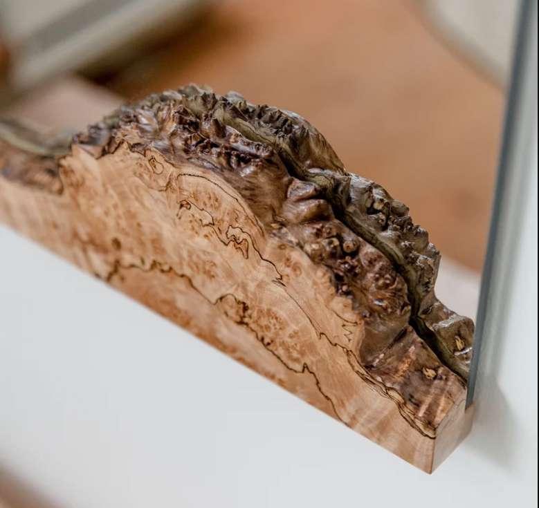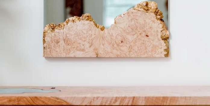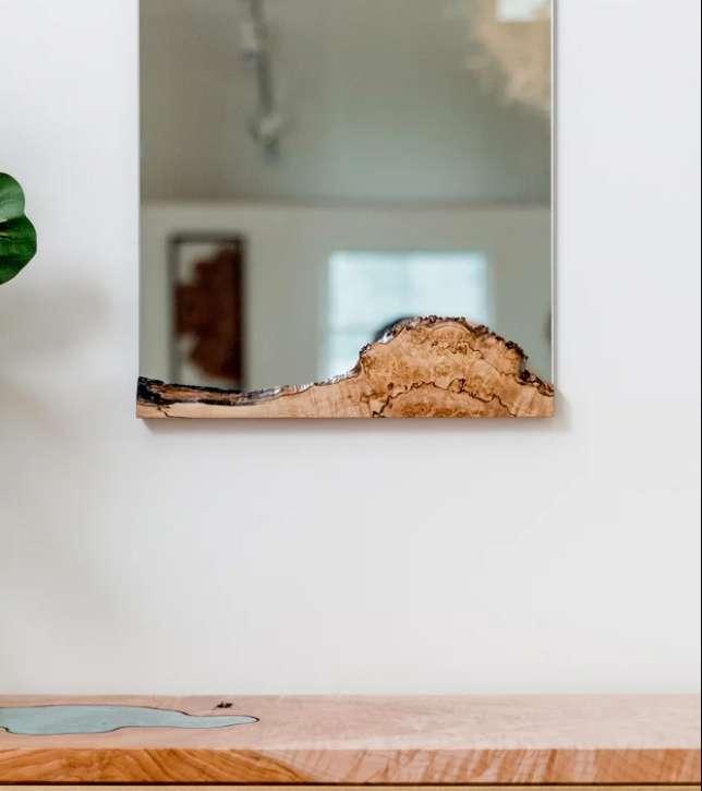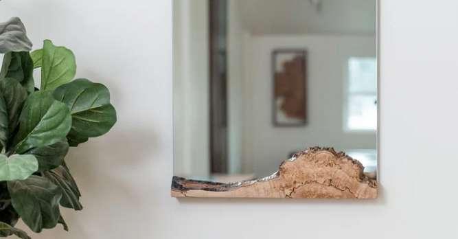 Les formes épurées et les lignes élégantes de nos miroirs se marient parfaitement avec le bois brut, créant un style naturel et authentique. Chacun de nos miroirs est unique, avec des nuances de bois et des formes organiques qui lui sont propres.