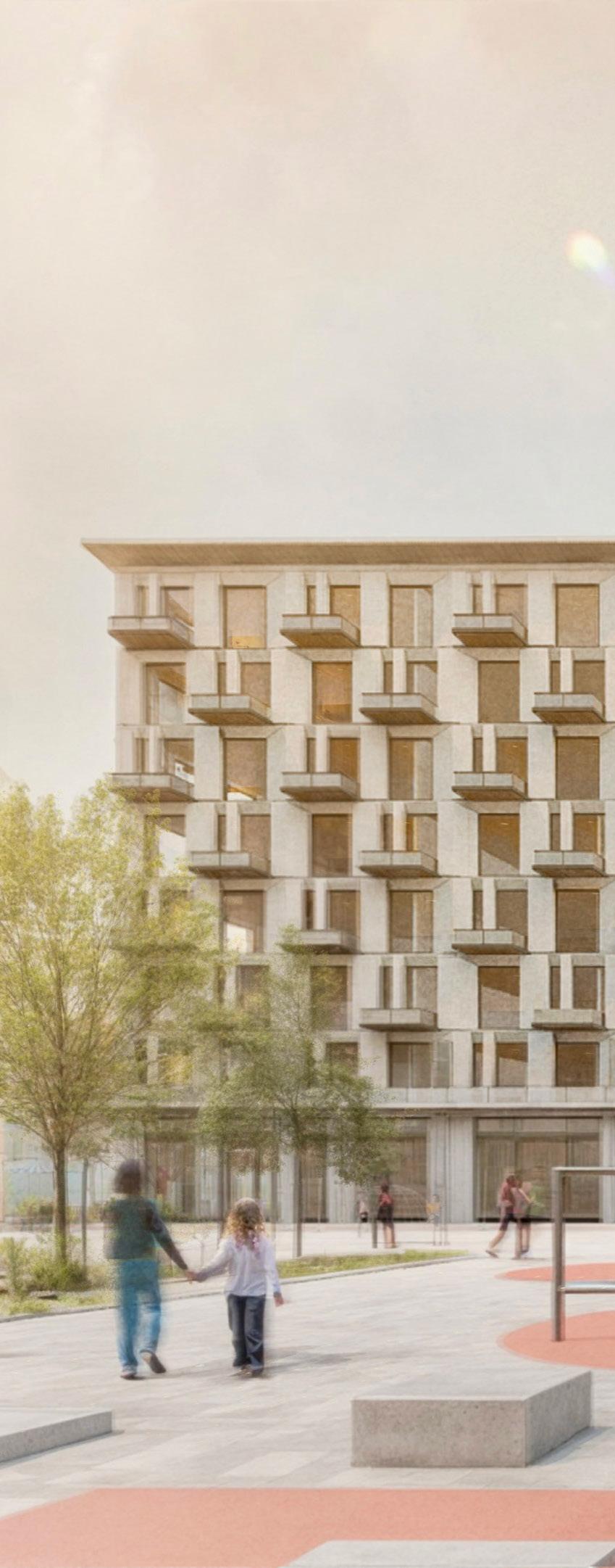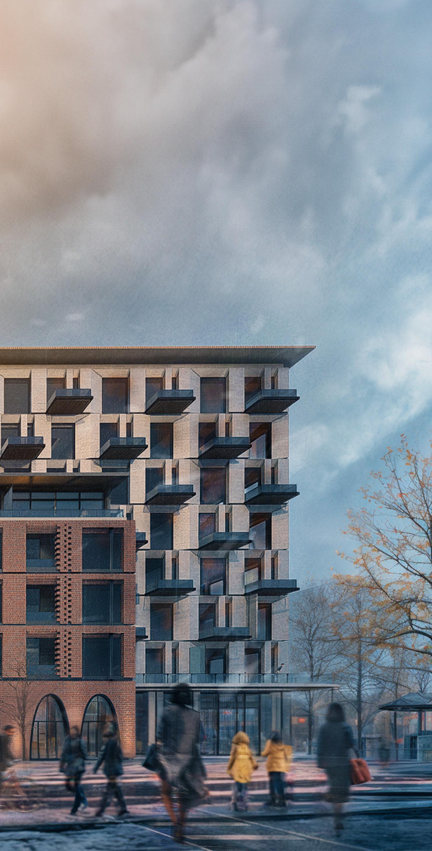 Brick Commons aims to be a housing community that accommodates a wide range of age groups and abilities. The project consists of two mid-rise buildings: ‘Building A’ located on Montreal Road, which serves as a mixed-use space, and ‘Building B’ situated along Lévis Avenue. The project is part of a larger call for urbanization and repurposing of the Vanier neighborhood to a vibrant and inclusive space for artists.