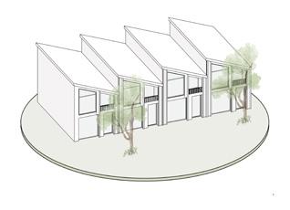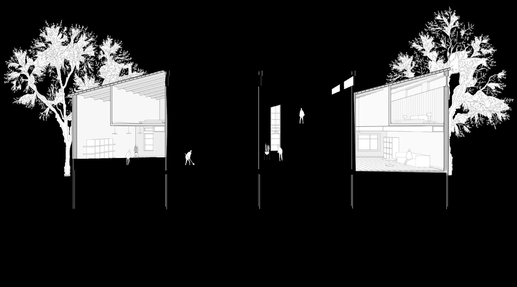The street-scape is composed of contemporary, Timber frame homes that emulate the retreat of a summer cottage, shaded by preexisting local greenery.