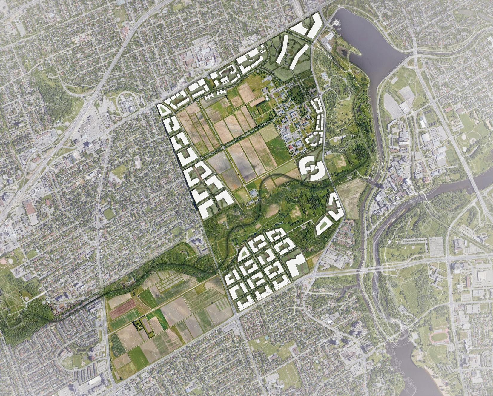 The redevelopment plan of the Experimental Farm approaches the site from an urban point of view by engaging with the agricultural site from a fresh perspective. The project aims to incorporate elements of agriculture and introduce commercial and residential intensification while also preserving the historical and cultural significance of the site.