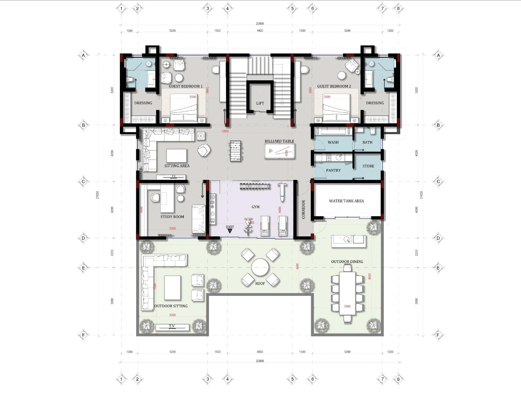 As part of my role with J5 Design, I contributed to the interior fit-out and spatial layout of the residence, including the design of the outside terrace.