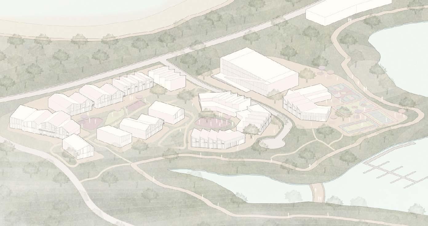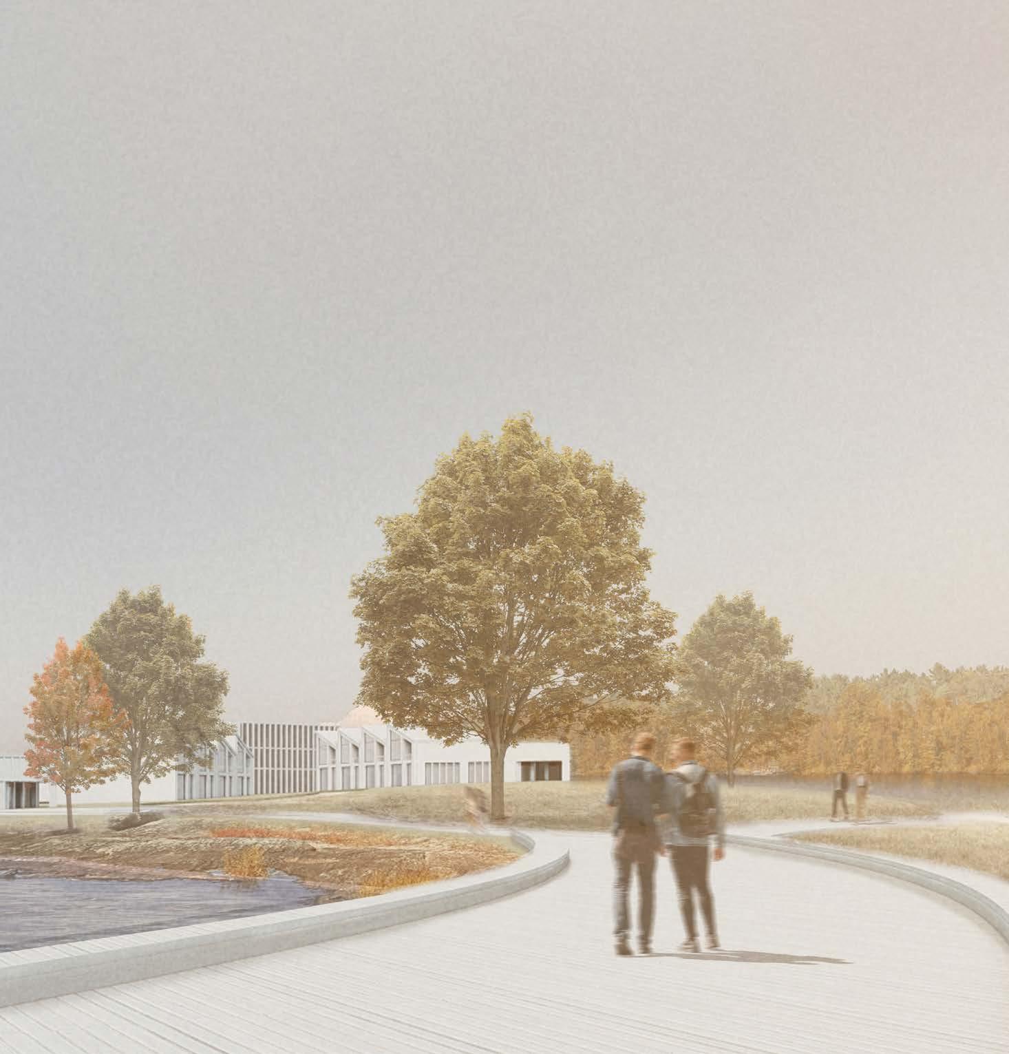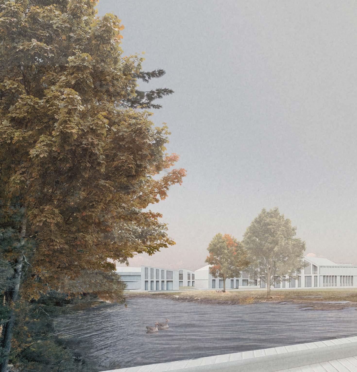 Muskoka Bay is a vernacular redevelopment on the wetlands of Gravenhurst, transforming what was once an abandoned sanitarium to a vibrant residential community. New commercial centers, and residential spaces are embraced by Lake Muskoka, providing an ideal location for peaceful living, outdoor activities and wildlife interconnection. All developments use local materials and respect existing green spaces to maintain the indigenous ecology and improve sustainability practices so that younger generations can continue to grow and prosper alongside the natural ecology.