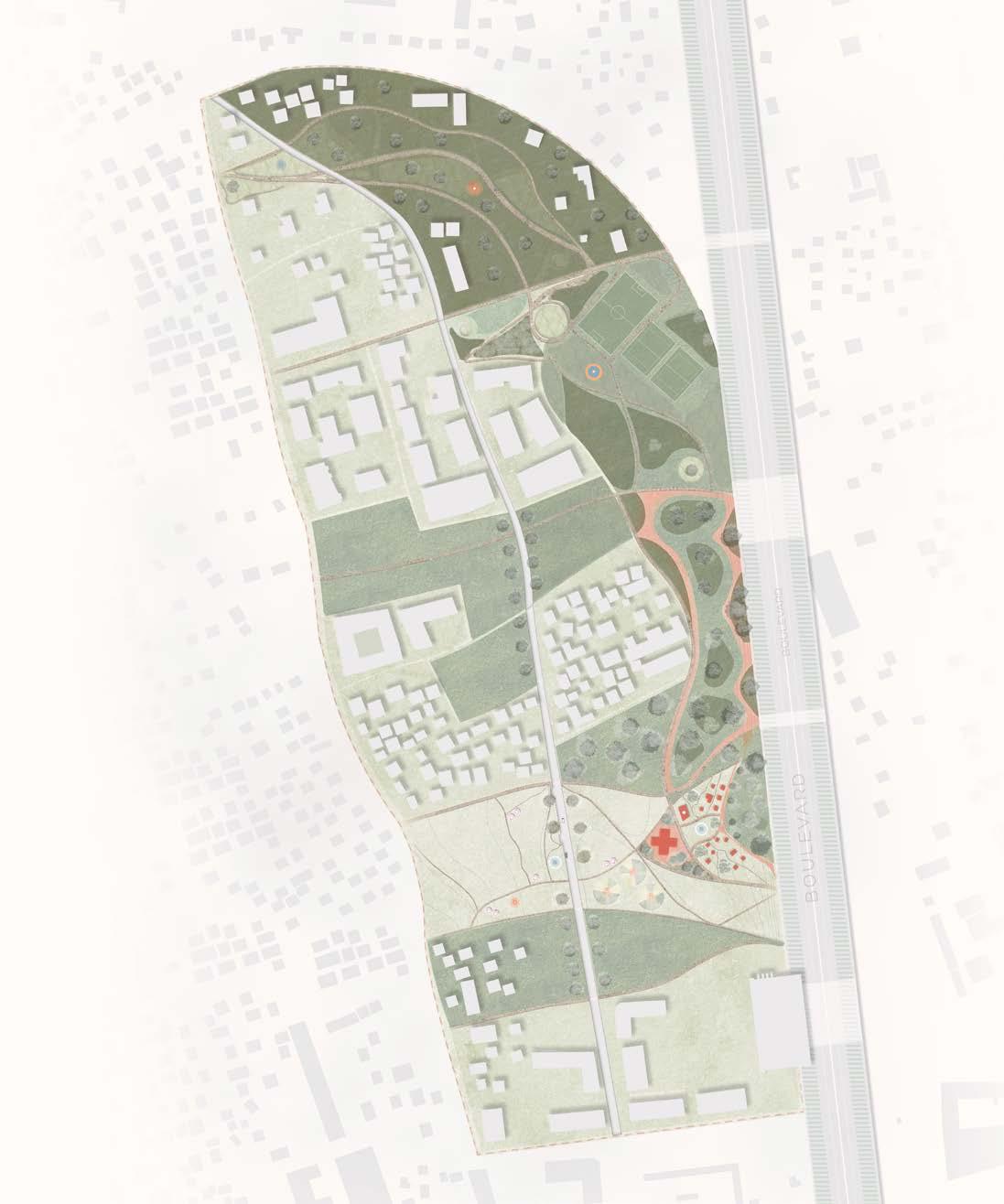The 70-acre site in Tirana, Albania, is slated for redevelopment as part of the city’s plans for high-end architecture and a park. However, this redevelopment poses a threat to the informal settlements located on the site. This project seeks to provide livable and recreational spaces for the current residents through tactical architecture interventions that address water insecurity, lack of shelter, and insufficient promotion of activism. The design approach is intentionally minimal and non-permanent to maintain the residents’ livelihoods while allowing for adaptability.
