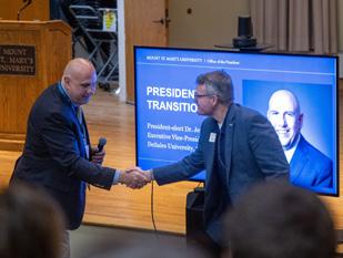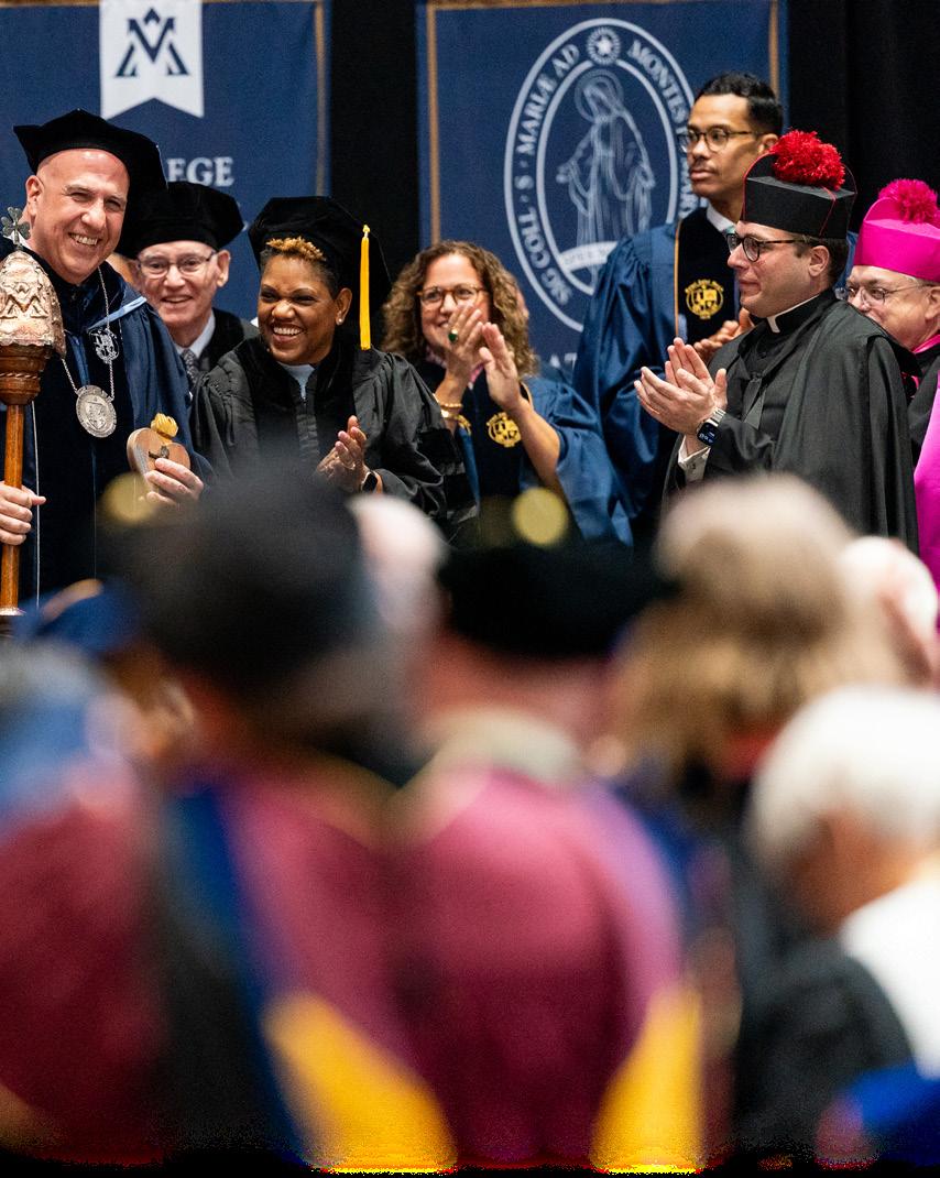 Let’s commit to bold action, unwavering integrity and a collaborative spirit. Let’s keep learning, keep serving and let our work ripple outward, making a difference near and far. Together, we’ll ensure Mount St. Mary’s shines as a beacon of knowledge, faith and hope—not just for us, but for generations to come. This is our Mount, our mission, our future. Let’s rise to it with all we have.”