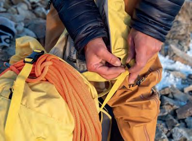With the launch of the Plamort MTB backpack and the cleverly designed high-end bikepacking series Cabezon, we’ve added waterproof products to our bike range. The Vertrail and Durascent packs are two new and exciting families of waterproof packs for mountaineers who don’t shy away from any mountain challenge and want to know that their gear is safe and dry, no matter what the weather. These waterproof products are made of durable materials (water column rating: 10,000 mm), have taped and welded seams and TPU-coated zippers to protect the pack’s contents from rain and spray when used as intended. And we put them to the test under realistic conditions: In a ten-meter-tall rain tower, stormy weather conditions were simulated for two hours straight, with “rain” literally dumping on the packs at a rate of 450 l/m²/h.