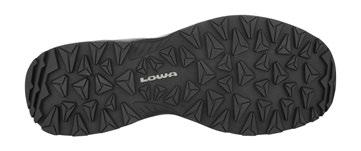 Made of polyurethane (PU), the LOWA outsole impresses users with a profile design that has been optimised with real-world challenges in mind. The strong combination of good cushioning behaviour and light ness turns the sole into an ideal footwear feature.
