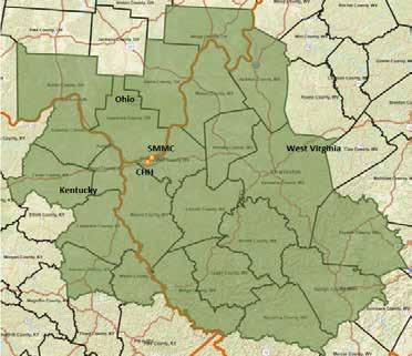 Mountain Health Network examined inpatient volumes for both Cabell Huntington Hospital (CHH) and St. Mary’s Medical Center (SMMC) to define the 2019 CHNA service area, consisting of 23 counties spanning Kentucky, Ohio, and West Virginia. The 23 counties comprise 95% of patients served by both medical facilities.