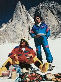 times than he can remember, and crashed his paraglider into most of the things one could crash into (including live electrical wires). He’s rolled vans, torn ACLs, been dragged hundreds of metres behind a snowmobile with a fractured leg, and tumbled down mountains on at least three continents, starting with a 700-metre doozy that deposited him into a crevasse while attempting to ski off the summit of Ranrapalca (6,162 metres /20,217 feet) in Peru way back in 1977.