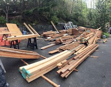 materials were in good shape. His team, led by local specialists from Phase One Dismantling, diverted almost everything from the landfill. “I was surprised to learn asphalt shingles can be recycled,” Wood says. “So long as you can get them to the asphalt plant. We used a lot of the plywood and 2x4s for forming wood, that was easy. There is so much quality wood in old builds in this country.”