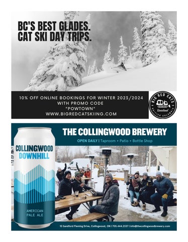 Cycle. Hike. Snow. Shop. Snack. Experience LOCAL 194355 grey road 13. beaver valley. eugenia garage13.ca garage13.bv 866.504.8091 Try one of our many varieties of Activated Turmeric Elixirs & Syrups to sip, warm, cold, or get creative and kick up your favourite beverage. roottofruit.ca 188 MARSH STREET, CLARKSBURG 57 Hurontario St., Collingwood (705) 445-6222 Shop online at mindsalive.ca The laTesTToys books and crafTs for kids Outdoor toys • Craft Kits & Supplies • Games & Puzzles Science kits • Puppets & dress-up • Infant toys • Thomas And books for infants to teens Shop on line at www.mindsalive.ca Mon.-Fri. 9:30-6:00, Sat. 9:30-5:00 Sun. 11:00-4:00 NOW OPEN IN DOWNTOWN COLLINGWOOD! 27 Hurontario (705) 445-6222 10073 MTNLF Minds Alive_Winter 2010_FNL.indd 1 The latest toys books and for kids of all ages Monday to Wednesday 10:00-5:30 Thursday and Friday 10:00-6:00 Saturday 10:00-5:30, Sunday 11:00-4:00 The Latest Toys, Books and Crafts for kids of all ages Outdoor Toys • Craft Kits • Games & Puzzles • Building Toys Science Kits • Puppets & Dress-up • Infant Toys • Books for infants to teens