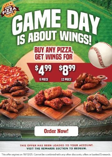 • Our standing Wings Add-On offer, keeps us competitive and is intended to build check and requires the purchase of any pizza.
