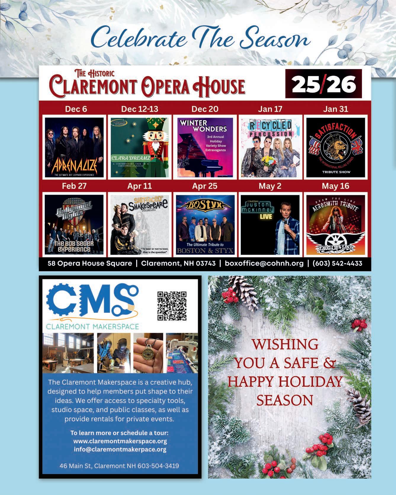 Around the area we’re also meeting AVA Gallery and Art Center’s new director, Lars Hasselblad Torres (page 40); visiting the good people at WISE (page 46); checking out a great idea—several Library of Things locations and the items they lend (page 87); and welcoming Colby-Sawyer’s new president, Dean McCurdy.