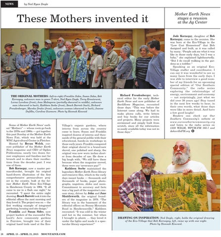 Some of Mother Earth News’ earliest “Mothers” — whose roots go back to the 1970s and 1980s — got together this past Sunday at the Mother Earth News Fair, which was held at the WNC Agricultural Center in Fletcher. Hosted by bryan welch, current publisher of the Mother Earth News magazine and CEO of Ogden Publications, nearly two dozen former employees and families met for brunch and to share their recollections from the decades past. I was one of them. bob Kornegay, now a master permaculturalist, brought his original hand-drawn illustration of the first comprehensive permaculture project in the country, built at the former Mother Earth News Eco-Village in Henderson County in 1984. “It all came to me in a flash one night,” he recounted. “I spent the entire night drawing. beach barrett took it into the editorial offices the next morning and they loved it. The project was on — the first working example of integrated gardening, housing and site design.” franklin and Susan Sides, now project leaders of the successful The Lord’s Acre community gardens in Fairview, brought two of their original hand tools used at the Eco-