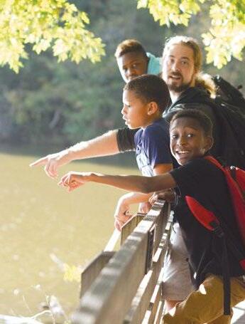 A fourth-grade OpenDoors Asheville student paddles at the YMCA’s Camp Watia this summer. In 2022, in addition to yearround academic interventions and college prep programs, OpenDoors sent 47 students to over 76 weeks of day camp and 25 weeks of sleepaway camp. In addition to ensuring that all camp fees are paid for, OpenDoors provides equip -