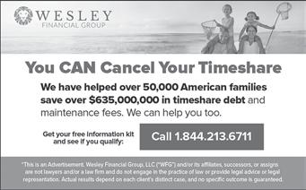 Over $50,000,000 in timeshare debt and fees canceled in 2019. Get free informational package and learn how to get rid of your timeshare! Free consultations. Over 450 positive reviews. Call 844-213-6711 (NC Press)