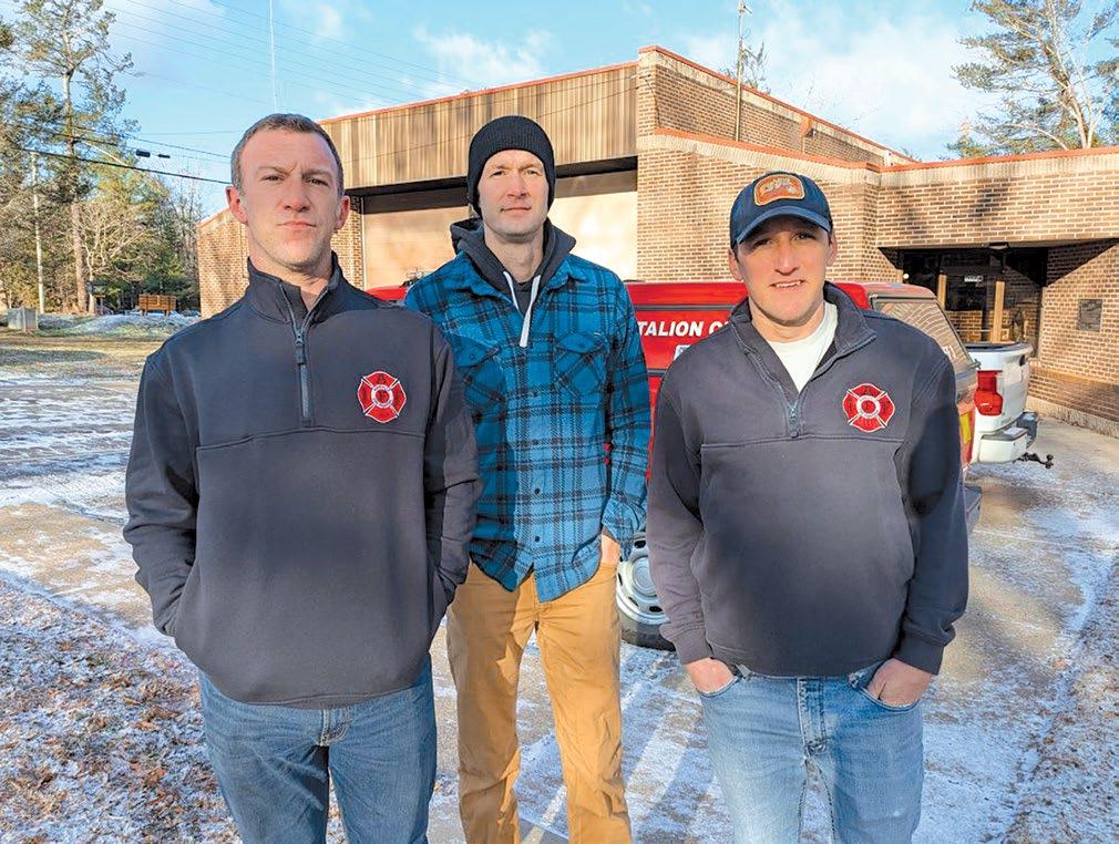 SPEAKING OUT: Asheville Fire Fighters Association – IAFF Local 332 members, from left, Greg Miller, Hayne Griffin and Welcker Taylor stand outside Station 5 on Hendersonville Road. The three have been working to improve compensation, scheduling and work-life balance for their members but worry that recent resignations and a slow rollout of a new fourth shift could doom their efforts. Photo by Thomas Calder