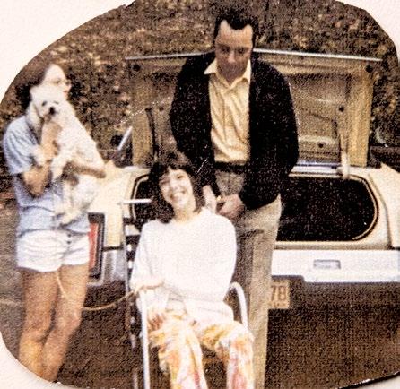 BLACK BEAUTY: Barb Knight poses for a photo in her wheelchair, which she named Black Beauty. Also pictured is her father, John, and her sister, Carol, holding the family dog, Nicky. Photo courtesy of Knight