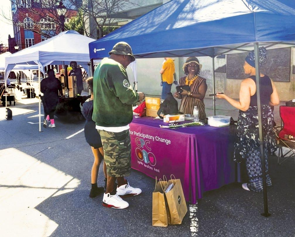 Throughout the spring, entrepreneurs will flock to The Block — the historic heart of Asheville’s Black business and cultural district — for the Ujamaa Marketplace. The monthly, recurring vendors’ market launched in March and will continue to run through May, with a final special all-day gathering set for Juneteenth. On this week’s cover, starting left, alexandria ravenel, Aisha Adams and Ramona Young.