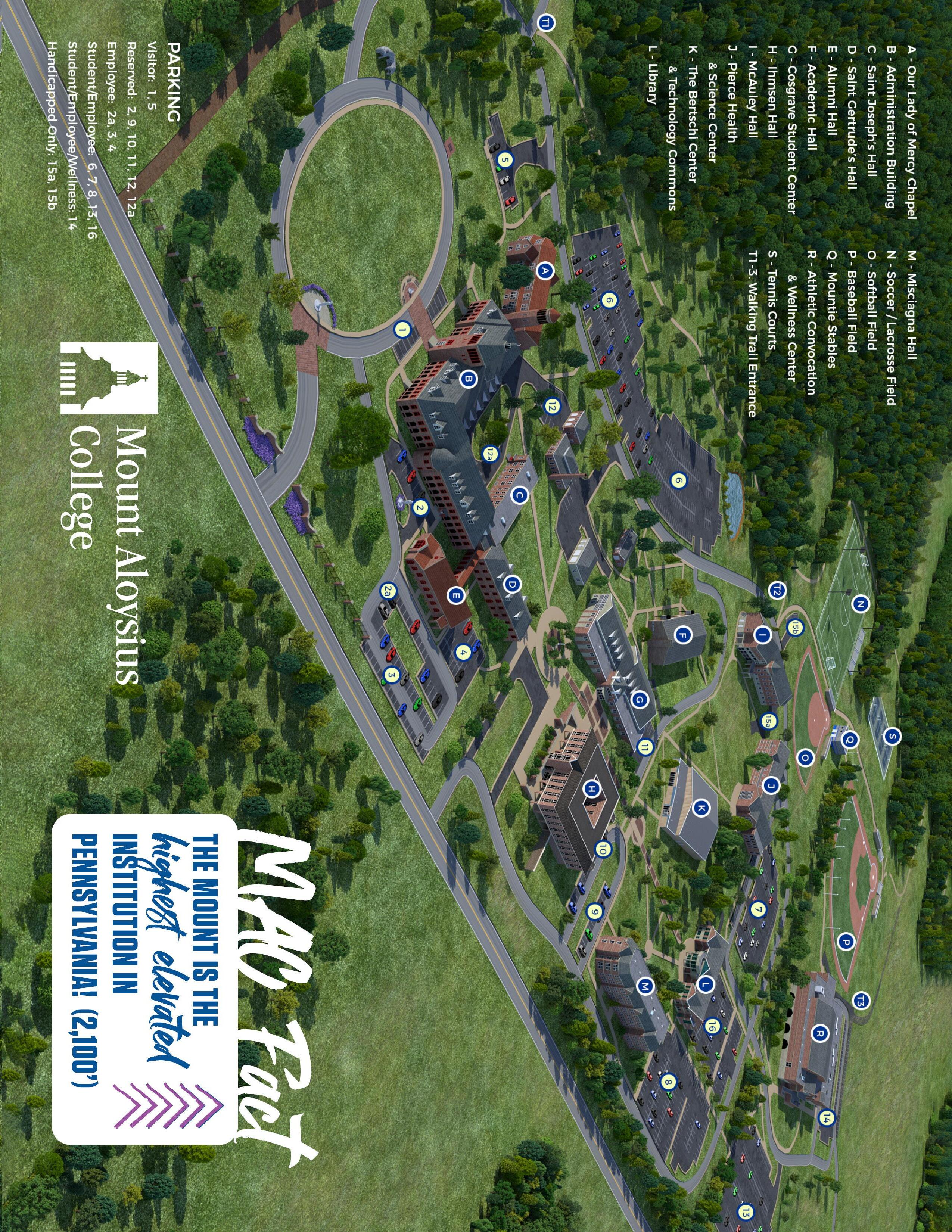 A vehicle parked on-campus is at the risk of the owner. Mount Aloysius College assumes no responsibility for damages, thefts, accidents, or other incidents involving vehicles.
