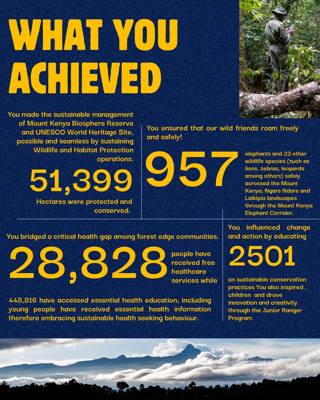 We are hugely grateful to the Kenya Wildlife Service and Kenya Forest Service, who not only waive entry fees but also provide security along the route. This support is made possible through the year-round work and partnership of the Mount Kenya Trust. Lewa Wildlife Conservancy also plays a key role, assisting in multiple ways including security, logistics