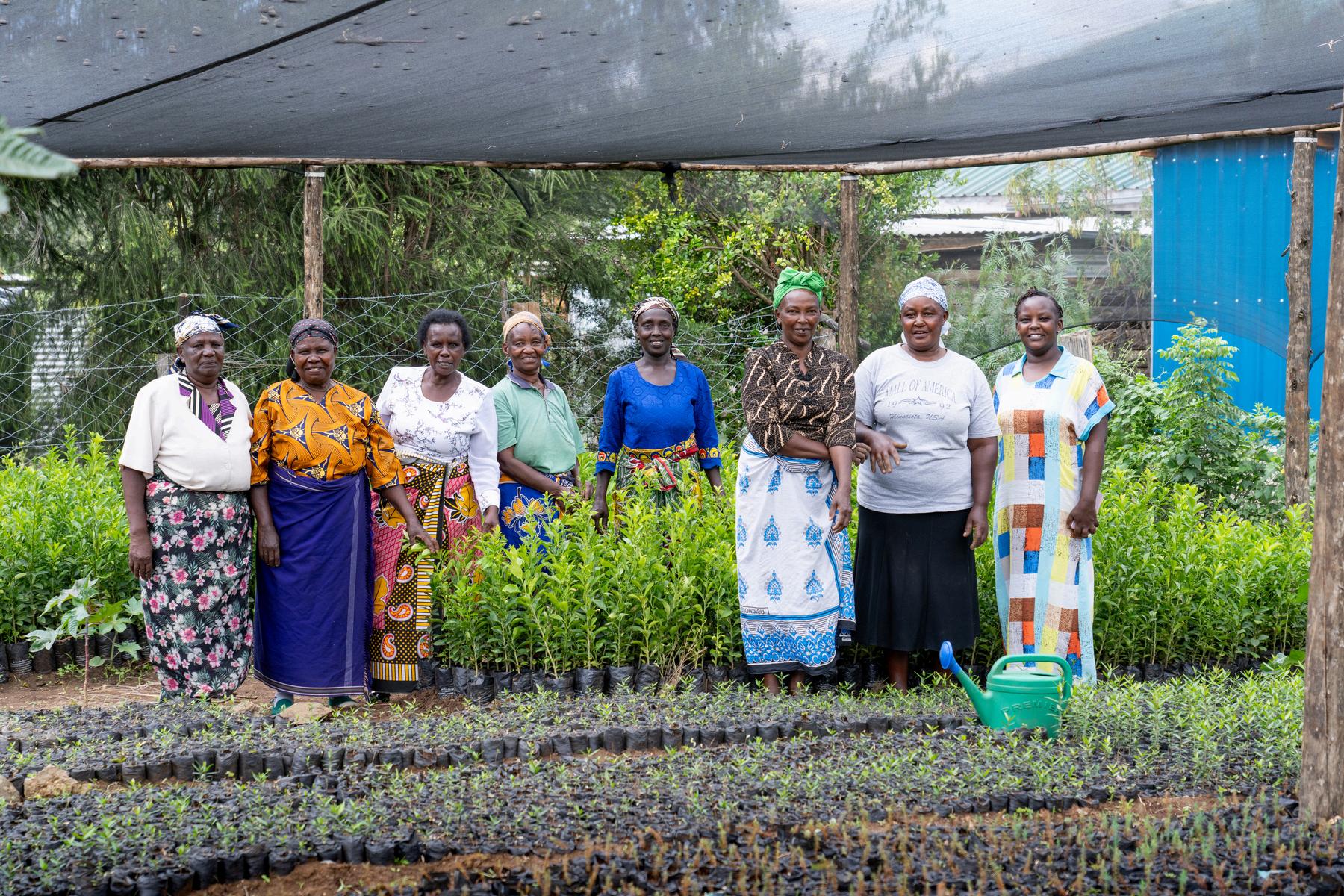 nursery into a thriving hub of environmental restoration and economic empowerment. Led by 67-year-old Pricilla, the group brings joy, resilience, and deep purpose to their work. Twice a week, they gather with laughter, tools in hand, to tend to their seedlings, carefully inspecting, potting, and nurturing each one with skilled attention.